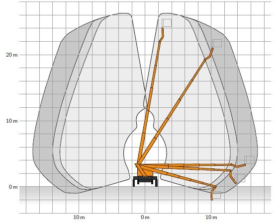 • 26 m Arbeitshöhe und satte 17 m Reichweite = mehr Arbeitshöhe und Reichweite als der Vorgänger STEIGER® Ampero TBR 250 E