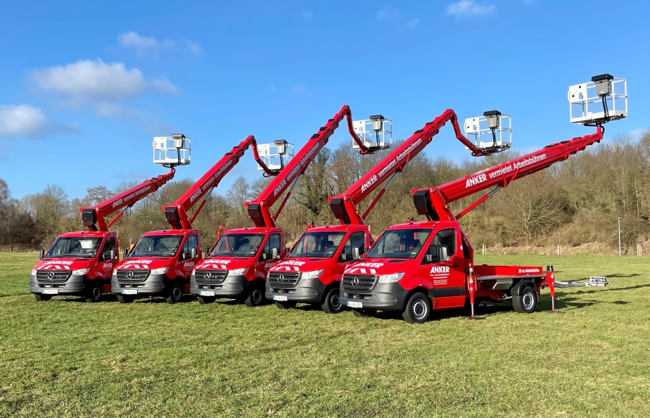 Ab sofort bereichern zwei RUTHMANNSTEIGER® TBR 230 das Portfolio von Anker. Die Arbeitsbühne bietet hervorragende Leistungsdaten auf 3,5 Tonnen. Mit 23 m Arbeitshöhe, 17,5 m Reichweite und einer Korblast von 300 kg ist der TBR 230 ein Absoluter Allrounder für ein großes Einsatzfeld. Premium Stahl und neue Konstruktionen für den Fahrzeuggrundrahmen sowie die Korbkonsole erwirken maximale Stabilität.