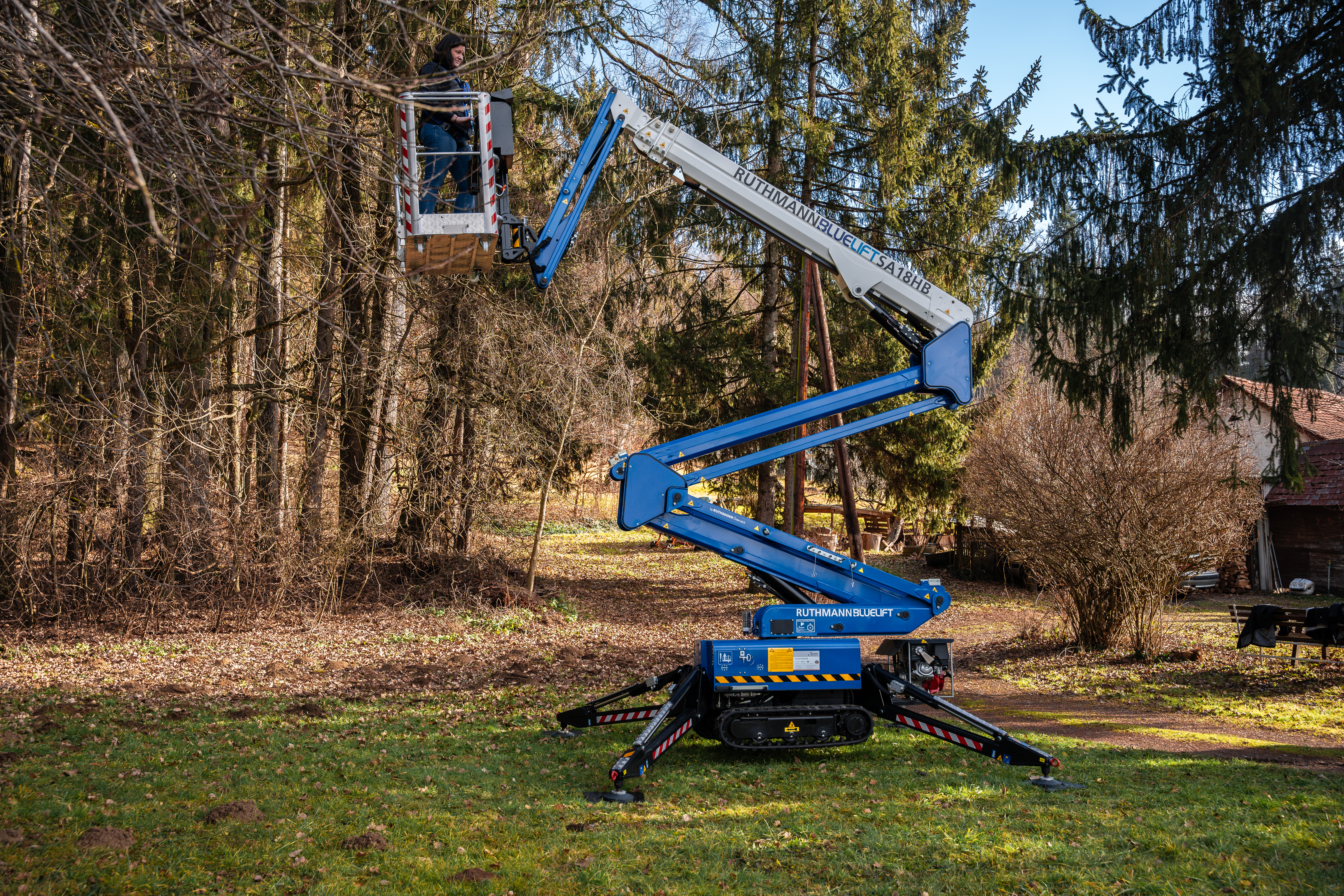 Um bei Dachreparaturarbeiten an schwer zugängigen Stellen bestens ausgerüstet zu sein wurde von Altenburger GmbH kürzlich eine 18m hohe Ruthmann BLUELIFT Bühne angeschafft.