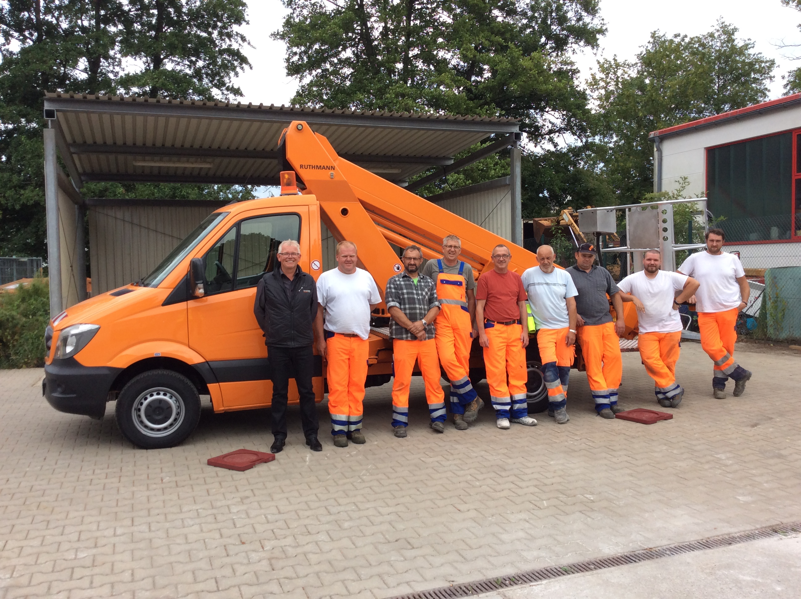 Günter Fuchs, Gebietsverkaufsleiter Süd-Ost bei Ruthmann, hat den STEIGER® TB 220 an die Mitarbeiter übergeben und diese ausführlich auf das Gerät eingewiesen.